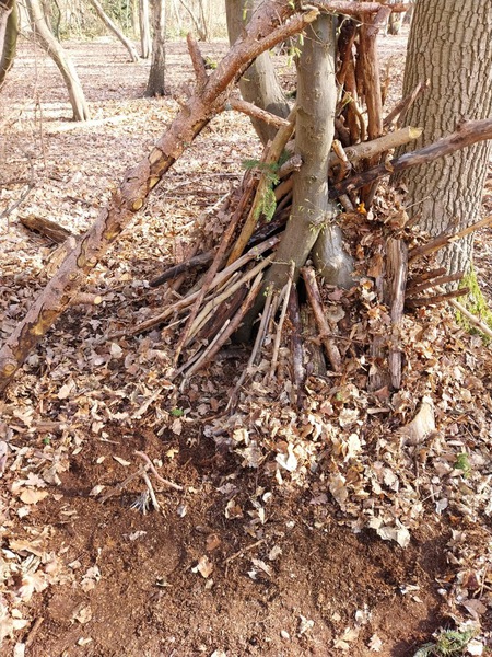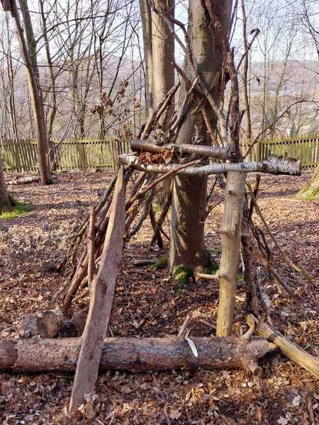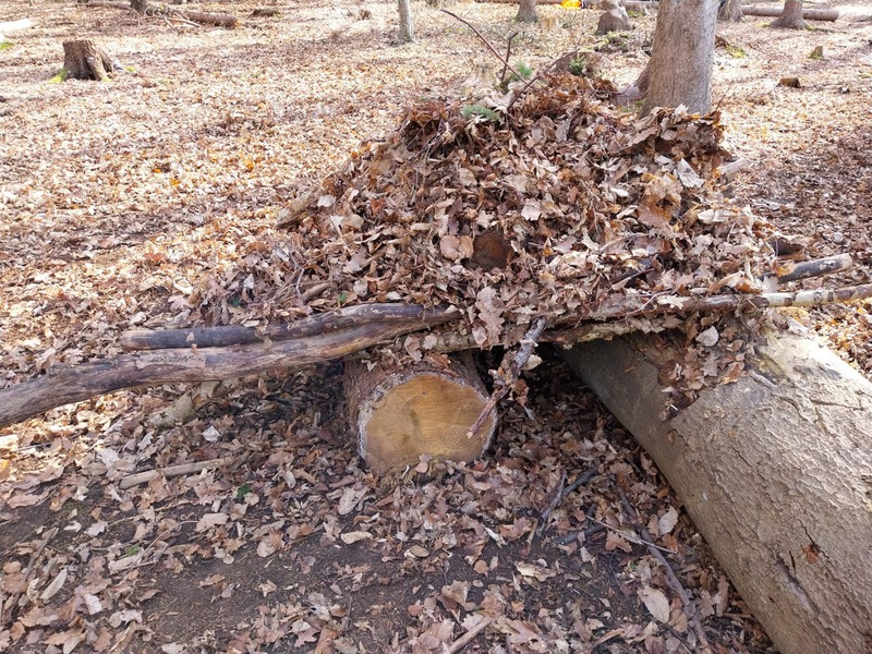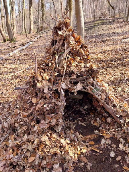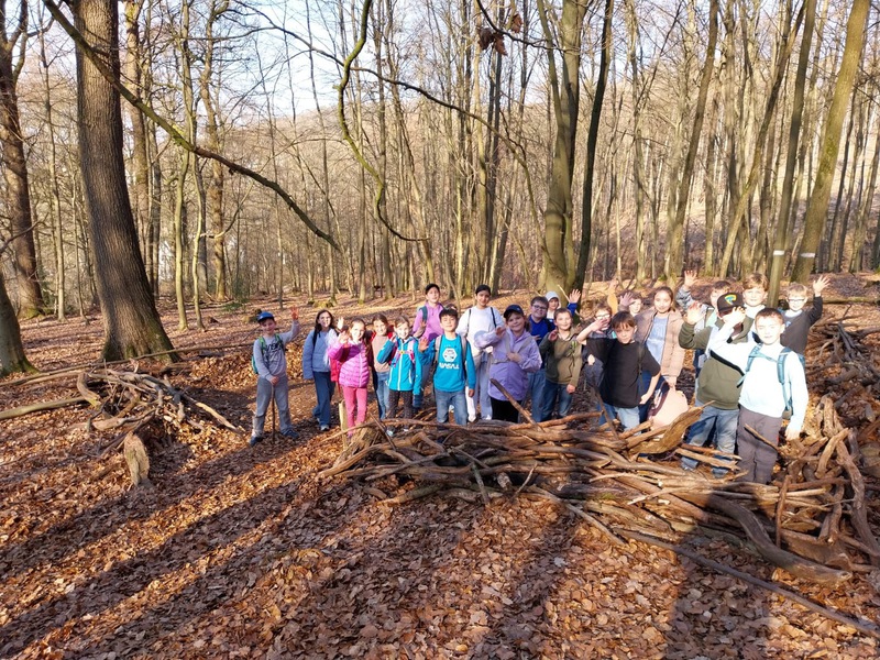 Gegen 08: 45 Uhr hat uns das Team „Kräftespiel“ abgeholt. In kleinen Gruppen haben wir Tippis im Wald gebaut.