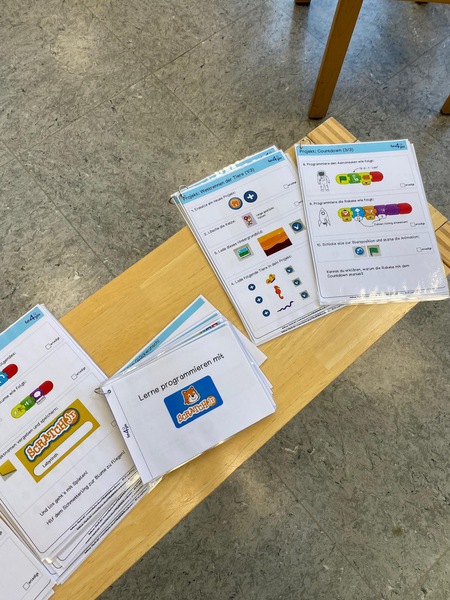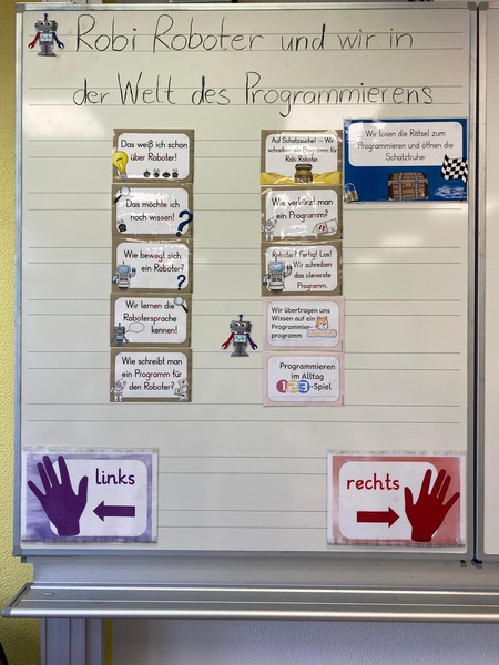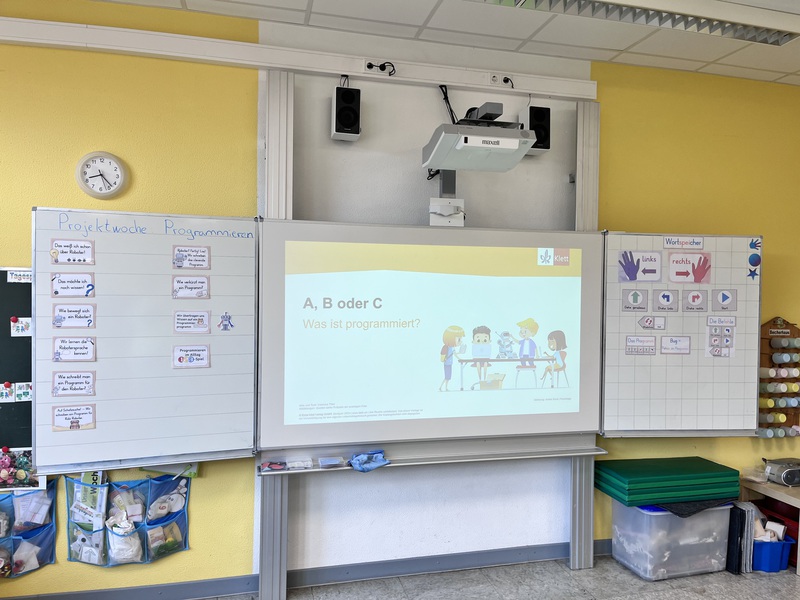Die Kinder der dritten Klasse lernen erste Grundlagen des Programmierens. Sie entdecken, wo Programmieren im Alltag vorkommt und wie Roboter oder Programme gesteuert werden.