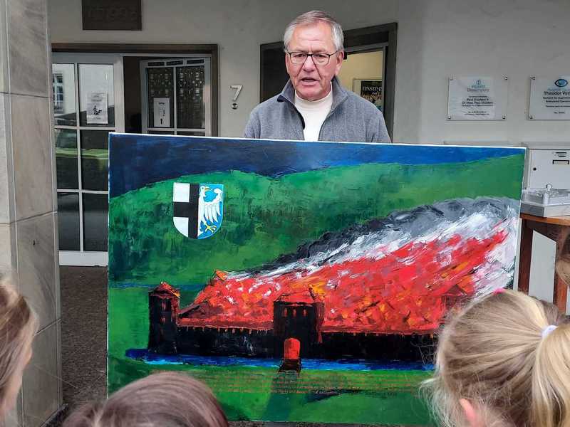 Anschließend gingen die Kinder da entlang, wo einmal die Stadtmauer stand. Sie war 1,50 m breit und circa 31 m hoch. Ein Wehrturm stand in der Einbahnstraße zum Rathaus, wo auch das Krankenhaus für die alten kranken Leute stand.