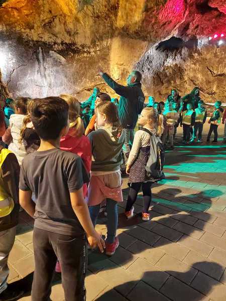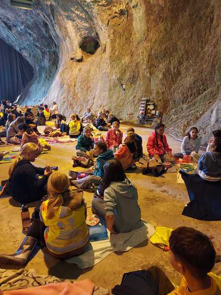 In kleinen Gruppen führte uns dann Herr Bathe durch die Höhle. Wir konnten endlich mal die gesamte Höhle erleben. Bisher kannten wir die Höhle nur durch die Festspiele. Es war sehr interessant. Am Ende des Rundgangs hatte Frau Knips, die im Museum der Stadt Balve arbeitet, Knochenfunde dabei. Diese Funde durften wir anschauen und Frau Knips hat uns alles zu den Funden erklärt.