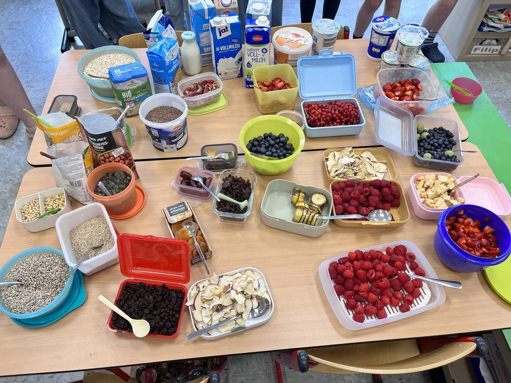 Ernährung: Meine Pausenbox, Lebenmittelpyramide, Brotgesichter, Obst und Gemüse, Obstsalat, Gemüsesuppe, Müsli machen